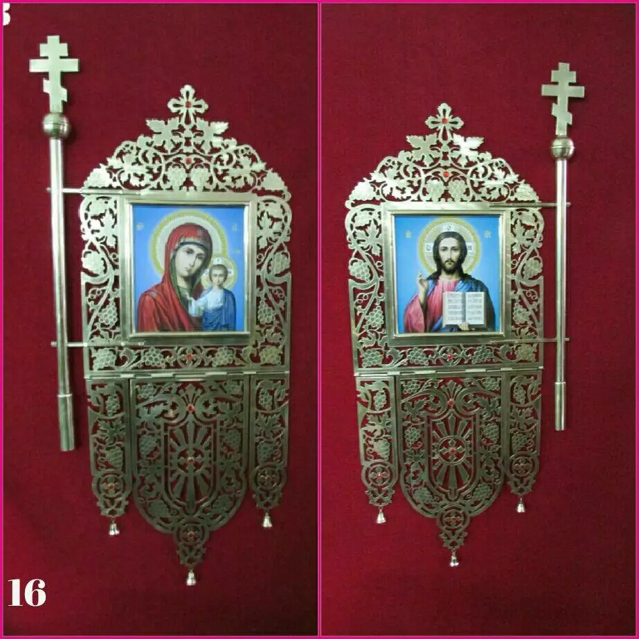 У нашому інтернет-магазині ви можете купити красиві латунні хоругви з образами Господа та Пресвятої Богородиці, а також замовити виготовлення прапорів за власними ескізами. Наші можливості дозволяють виконувати роботи із золоченням, декоруванням камінням, карбуванням, вишитими іконами.