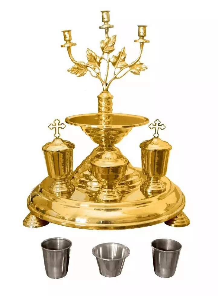 Пропонуємо всенічні блюда, які стануть справжньою окрасою урочистого Богослужіння. Набір складається з підноса з трьома ємностями з кришками, підставки та свічника на три свічки.