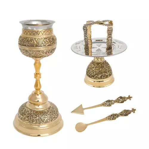 - Комплект: потир 0,2 л, звіздиця,копіє, лжиця, дискос,