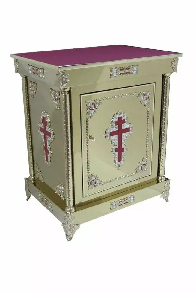 Майстерня «Фавор» виготовляє та реалізує жертовники для храмів різних форм, розмірів та стилів. У нашому магазині ви можете підібрати жертовник з колонами, карбуванням, литими елементами, кіотом, куполами, іконою. Для облаштування нової церкви рекомендуємо купувати одночасно і церковні престоли, виготовлені та оформлені подібним чином.