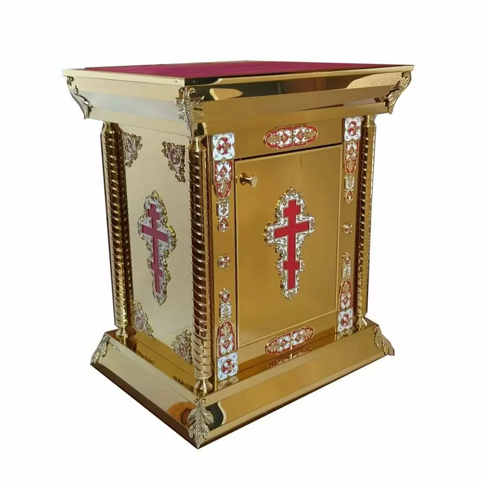 Майстерня «Фавор» виготовляє та реалізує жертовники для храмів різних форм, розмірів та стилів. У нашому магазині ви можете підібрати жертовник з колонами, карбуванням, литими елементами, кіотом, куполами, іконою. Для облаштування нової церкви рекомендуємо купувати одночасно престоли, виготовлені та оформлені подібним чином.