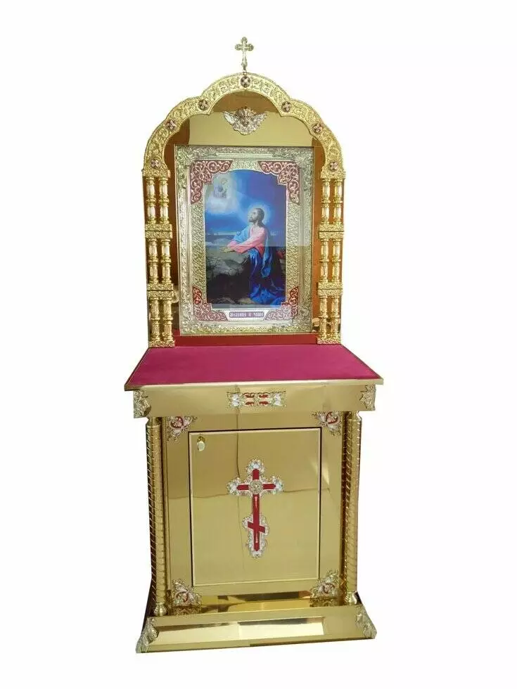Майстерня «Фавор» виготовляє та реалізує жертовники для храмів різних форм, розмірів та стилів. У нашому магазині ви можете підібрати жертовник з колонами, карбуванням, литими елементами, кіотом, куполами, іконою. Для облаштування нової церкви рекомендуємо купувати одночасно і церковні престоли, виготовлені та оформлені подібним чином.